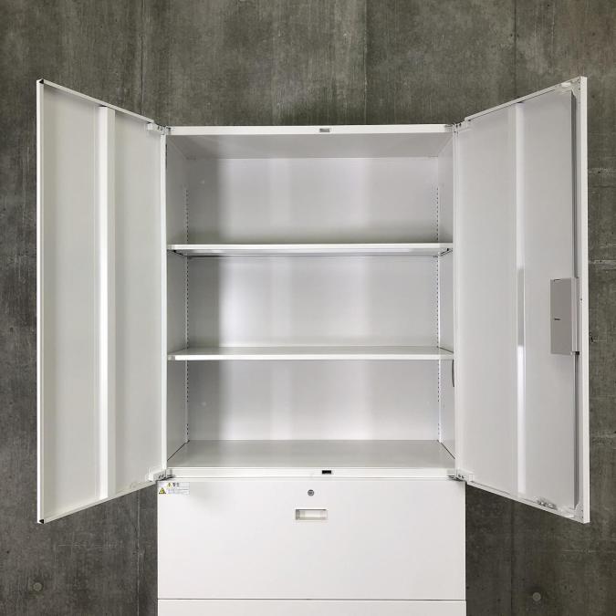 【T11】【商品入替のため、残り1台限り】イトーキ製 シンライン ホワイト W900xD450xH2140サイズ シリンダー錠 高品質で安心のスチールキャビネット! コレ1台で書類が一気に整理できます! 両開き+3段ラテラル 上下書庫セット!!