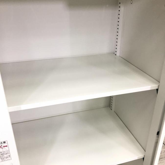 2枚引き戸書庫 オカムラ レクトライン 鍵付き シリンダー錠 ホワイト 天板無し スライド式の扉のため導線を邪魔しません