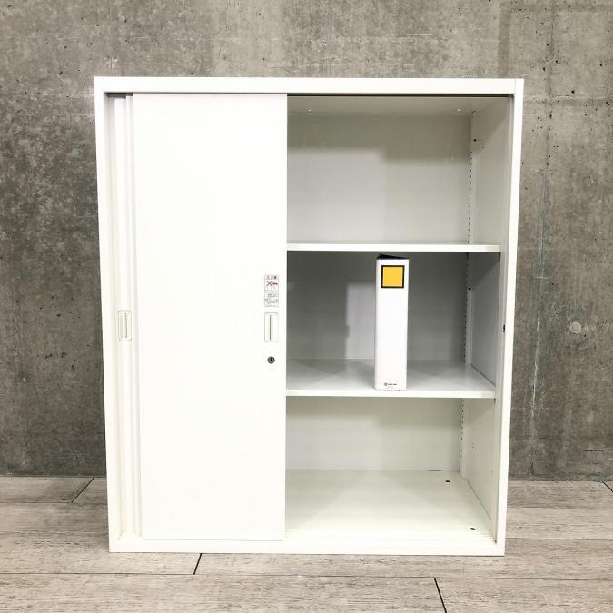 スライド式の扉のため導線を邪魔しません!使い勝手抜群の2枚引き違い書庫が入荷! ■オカムラ/レクトライン/ホワイト 2枚引き戸