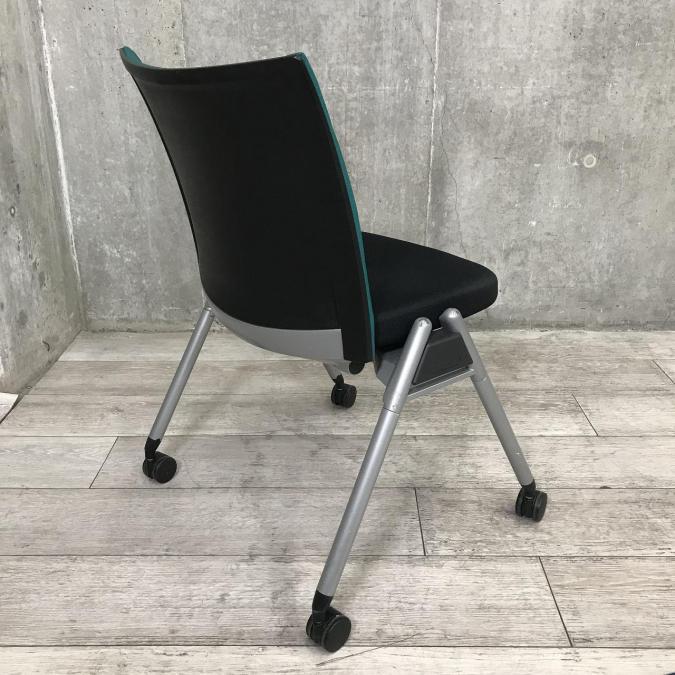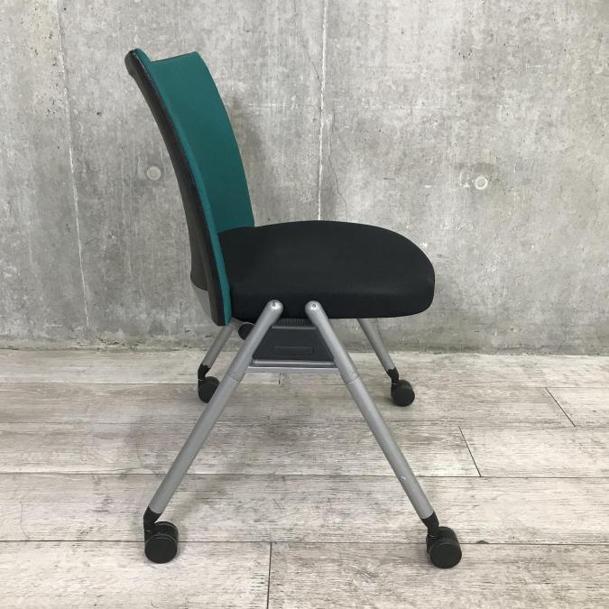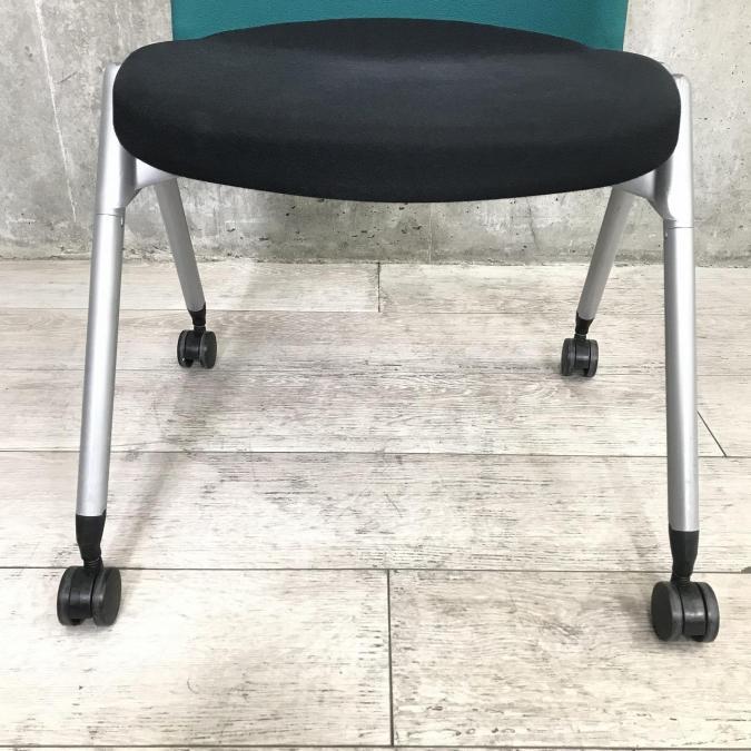【重ねて省スペースに大活躍!】■内田洋行(UCHIDA) ミーティングチェア スタッキングチェア グリーン×ブラック ■キャスター付きで移動らくらく!【ローコストでまとめて揃います!】- 足立・葛飾店