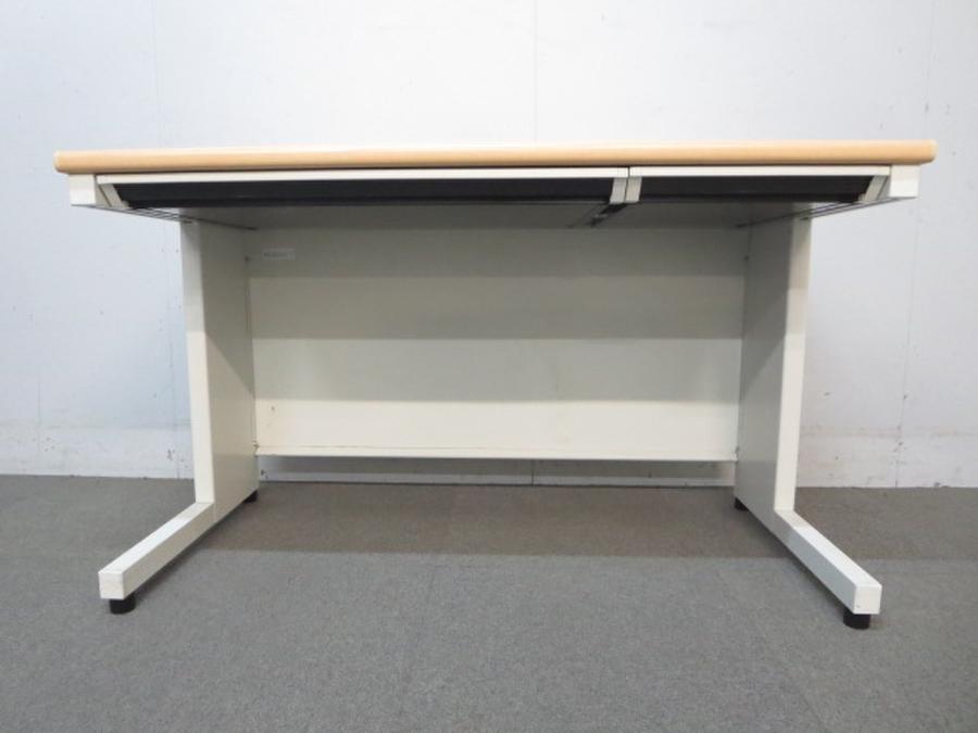 【ベーシックな使いやすさ・ローコストの引き出し付きデスク!】■プラス (PLUS) 製 フラットラインシリーズ 平デスク W1200mm 引き出し付(日焼け有) ■本体:ホワイト 天板:木目ナチュラル(メープル調) 【弊社使用欄:A01040783/A01035962】