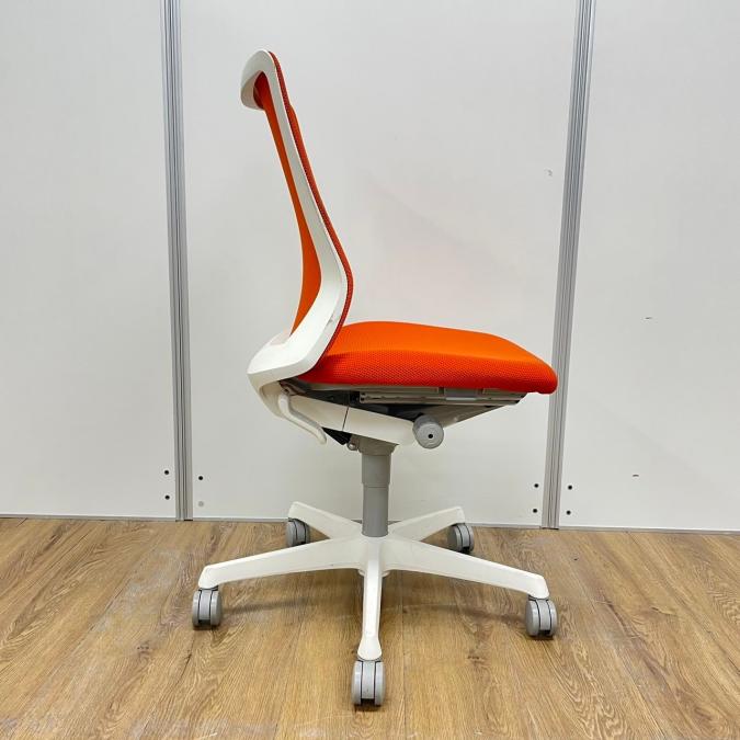 オカムラ製 フルーエント(Fluent) オレンジレッド ホワイトフレーム 肘無し ローバック 背面メッシュ 背中を立体的に包み込む! シルフィの座り心地を低コストで再現! 肘無しローバックチェア!!