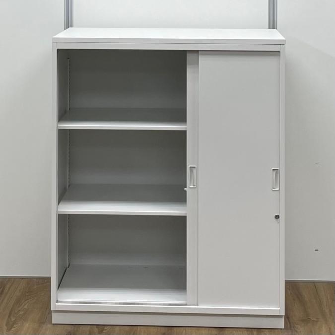 イトーキ製 シンラインシリーズ ホワイトカラー ホワイト天板付き スライド引き戸だから開閉スペースに困らない 3枚引き違い書庫!!※京都東寺店撮影現物画像※- 京都東寺店
