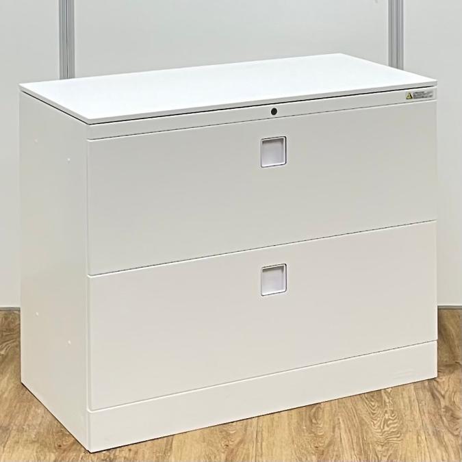 オカムラ製 レクトラインシリーズ ホワイトカラー ホワイト天板付き 窓下などにおすすめ 高さ720 2段ラテラル書庫!!※京都東寺店撮影画像※サーキュラーバリューCO2削減量の算出について
