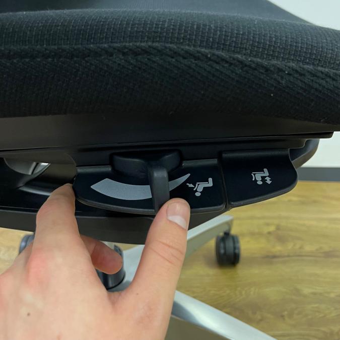 座面右下にあるレバー操作により、座面の高さが調節できます(ストローク:100㎜)。
