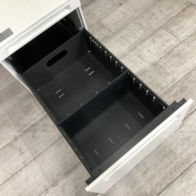デスクの下に収納出来て、資料や小物を収納出来ます。