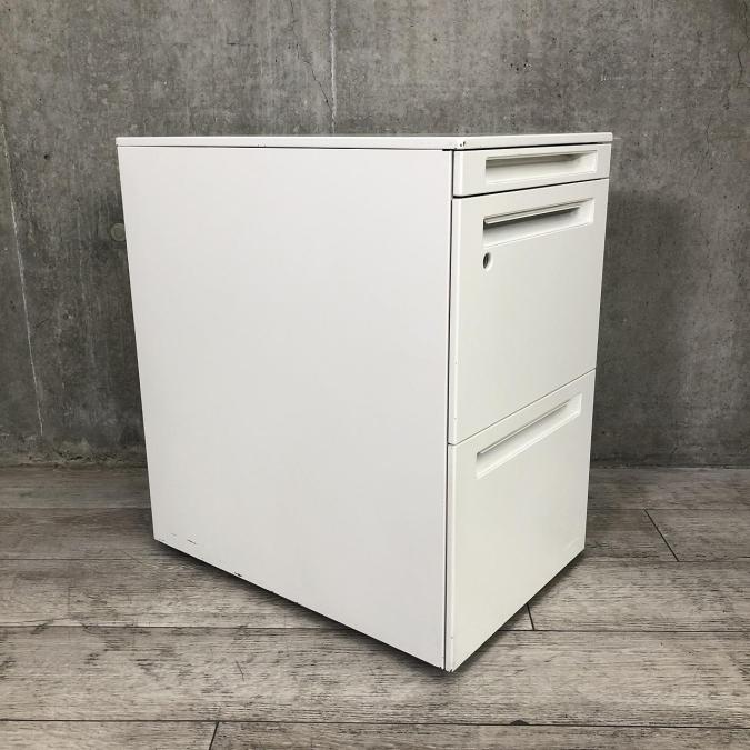 【フリアド用でも使える!】◆オカムラ/アドバンス/ホワイト ◆シリンダー錠/3段ワゴン 【弊社使用欄:A00931054】- 日本橋店