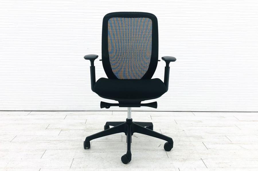 【限定1脚】【三次元曲面が身体にフィット!前傾チルト機能付き大人気メッシュチェア!】■オカムラ(okamura)製 シルフィーチェア(Sylphy) 肘付きハイバック ■背面メッシュ ■可動肘 ■ブラック×ブラックシェル ■ランバーサポート付き