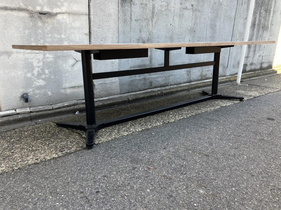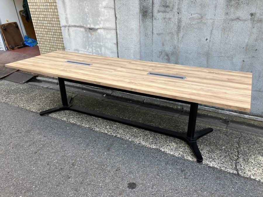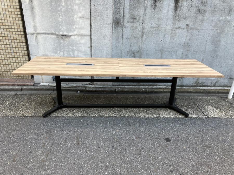 【8人用!ナチュラル天板の大型テーブル】■ミーティングテーブル 大型会議テーブル ■ナチュラル天板×ブラック脚 ■横2700×奥行き900㎜ ■配線口付き- 名古屋本店