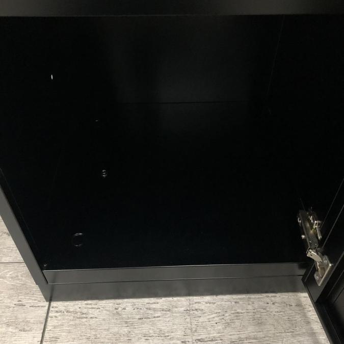 - 目立つ箇所複数あり深い傷・凹みが商品全体にある。(例、天板、正面、背部、サイド部分にある。)
