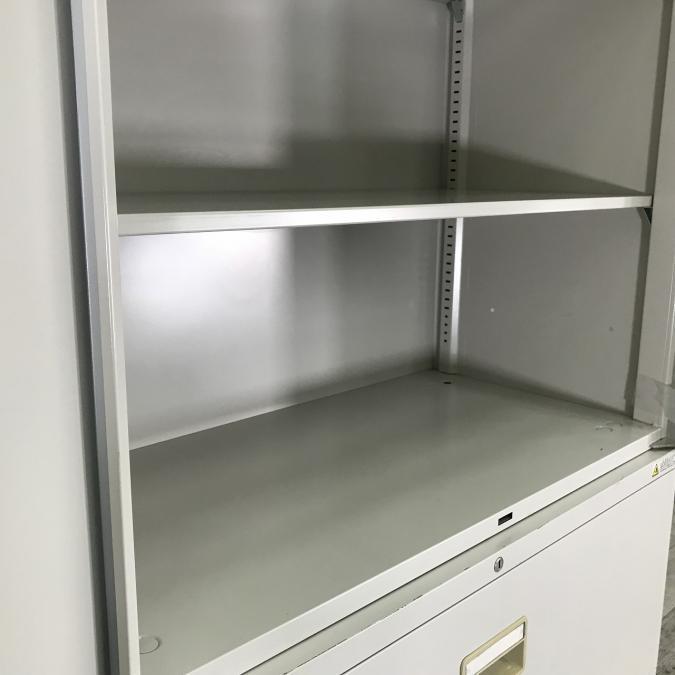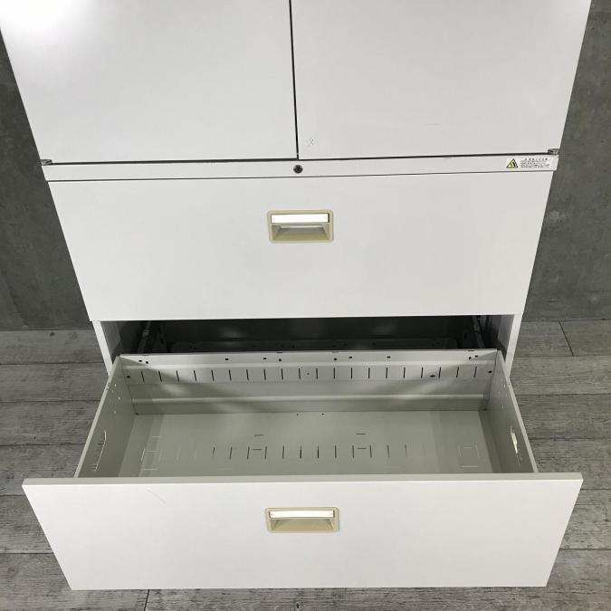 【在庫入替セール】【訳アリ】【オフィス収納の定番!】■オカムラ/42シリーズ/上下書庫セット/両開き+3段ラテラル ※上置きの扉に小さい傷がございます。ラッチにひび割れあり- 池袋店