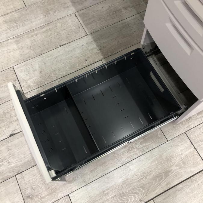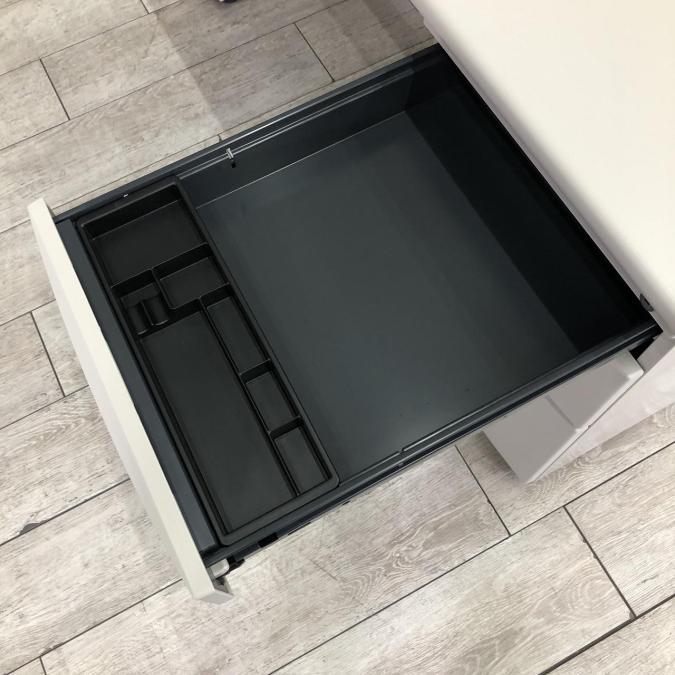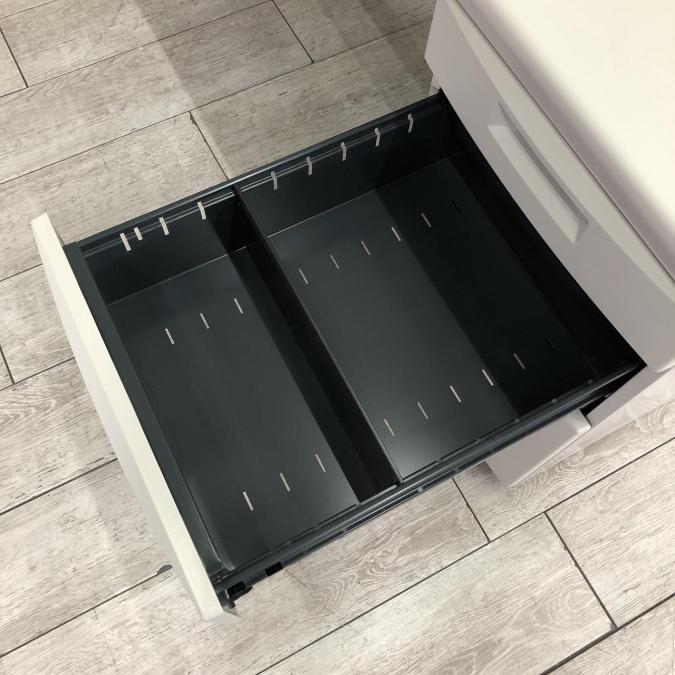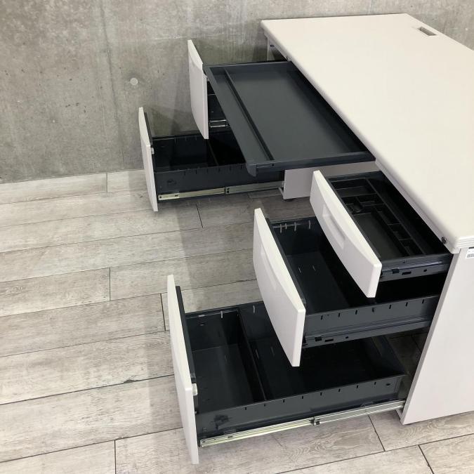 右が3段袖、左が2段袖引出しとなっておりますので、用途別の収納が可能です。