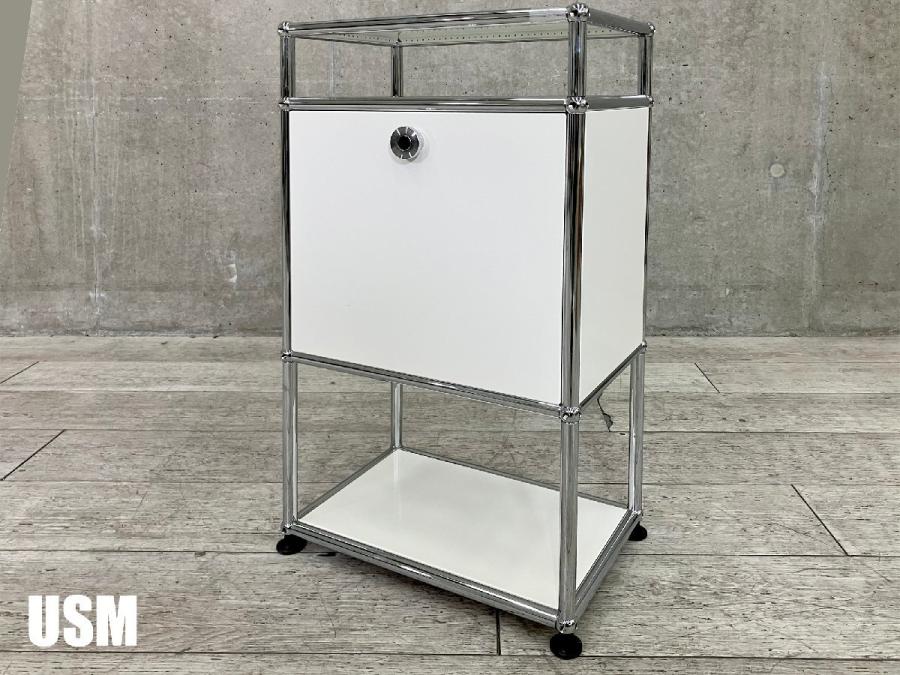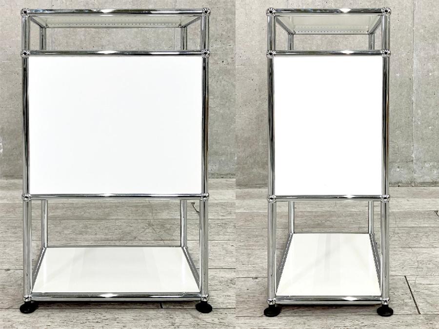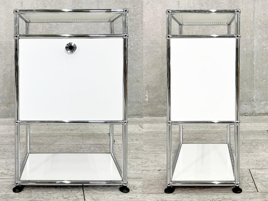 USMハラー 1連1段 脚付きキャビネット/ナイトテーブル ピュアホワイト D500 ガラストップ