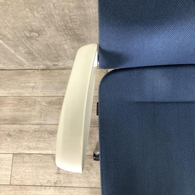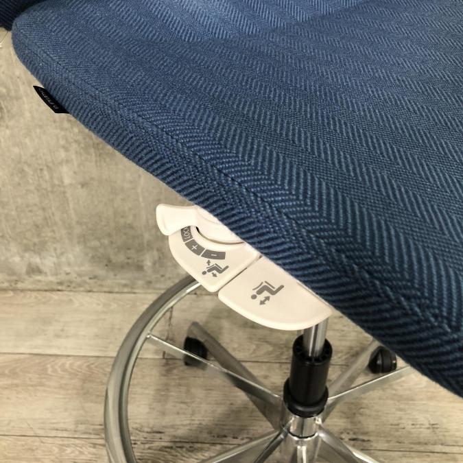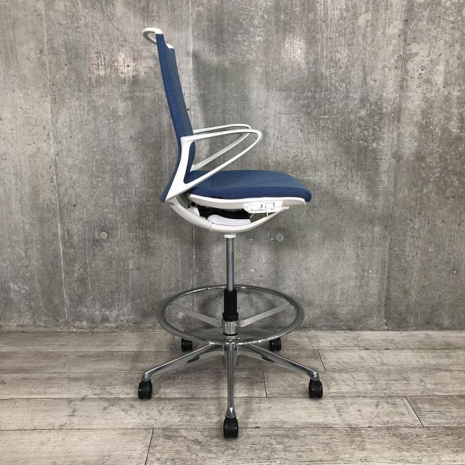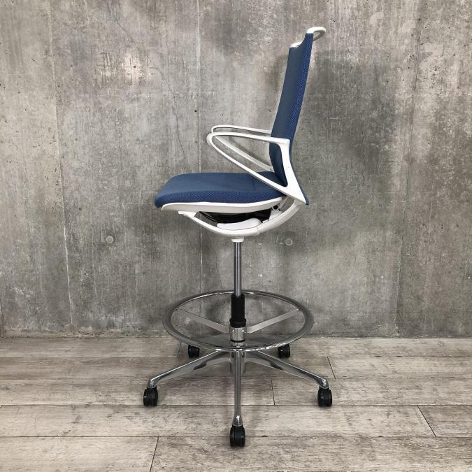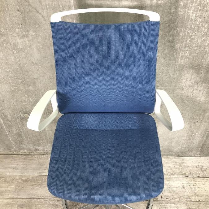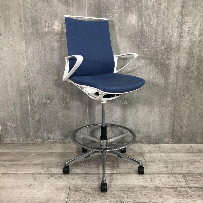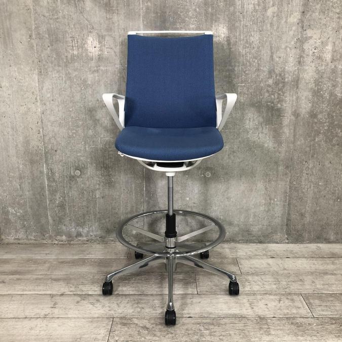 機能とデザインが融合 オカムラ モード ハイチェア ミドルバック デザインアーム ヘリボーン アクアブルー- 名古屋千種店