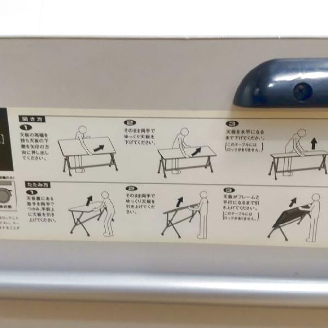 - 一部不具合あり天板歪み、アジャスター無し、キャスター使用不可ようなそのテーブルの本来の効用を果たすための機能以外の一部が使用不可な状態。(例、キャスターロッ ク機能使用不可、棚板無し等がある。)