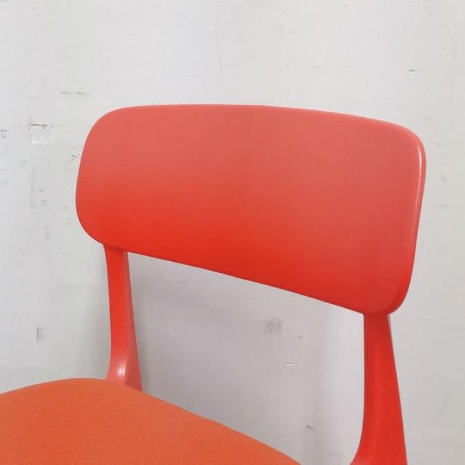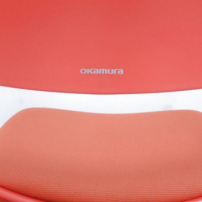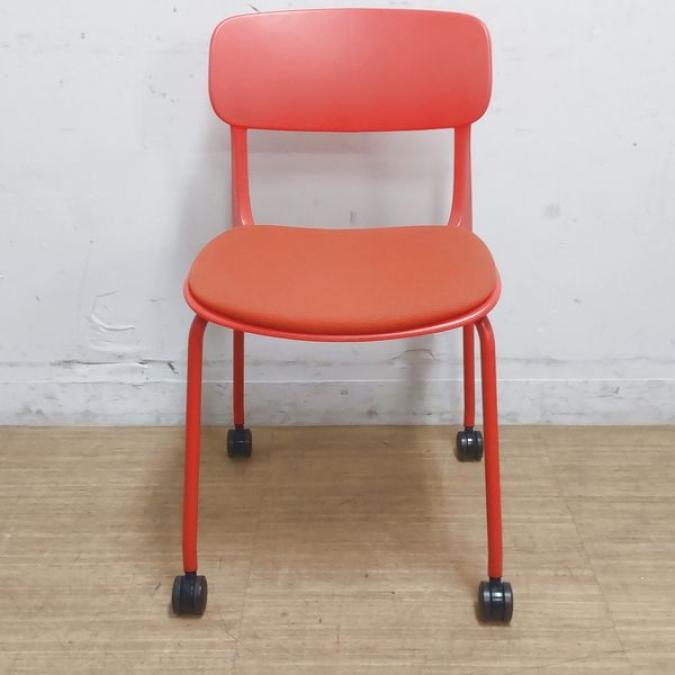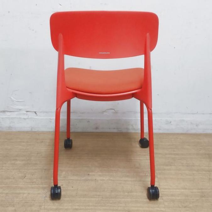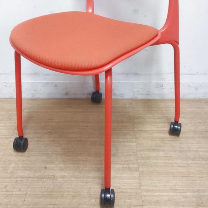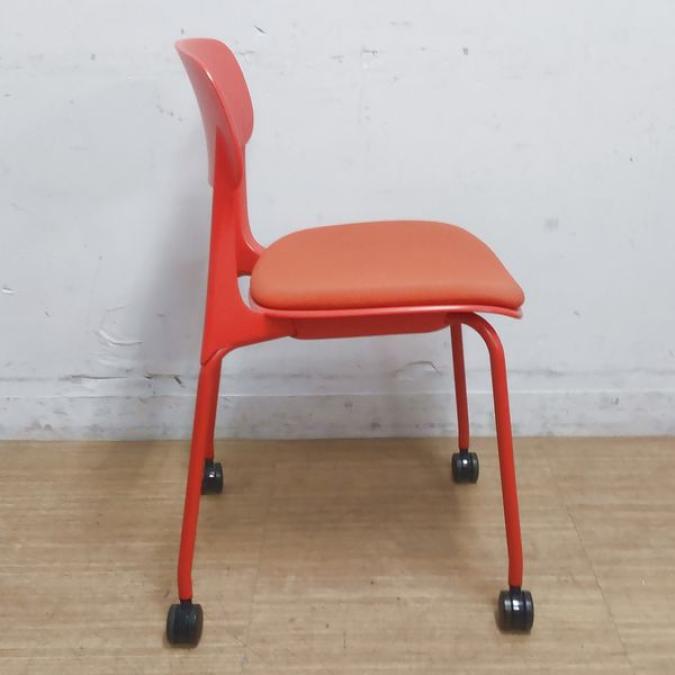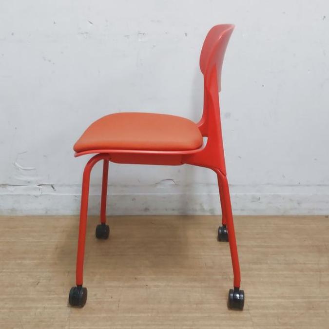【状態良好品】鮮やかな赤色が目を惹きます オカムラ エナ スタッキングチェア 座パッド付き キャスター付き オレンジレッド- 名古屋千種店