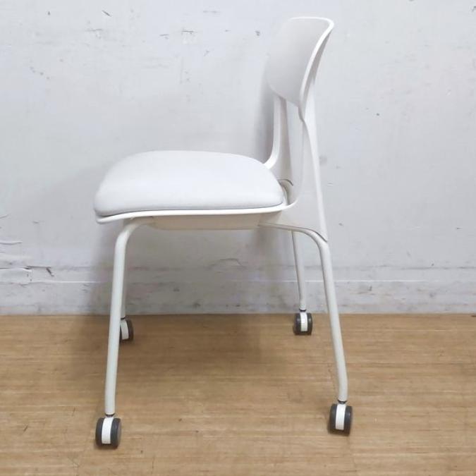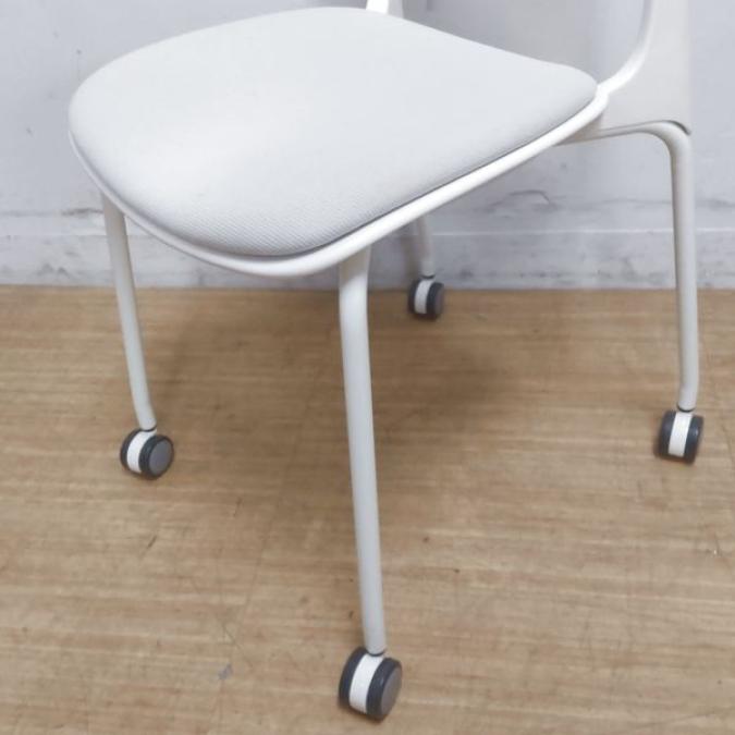 【ロット入荷!】【状態良好品】清潔感あるカラーがおしゃれ空間を演出 オカムラ エナ スタッキングチェア 座パッド付き キャスター付き ネオホワイト- 名古屋千種店