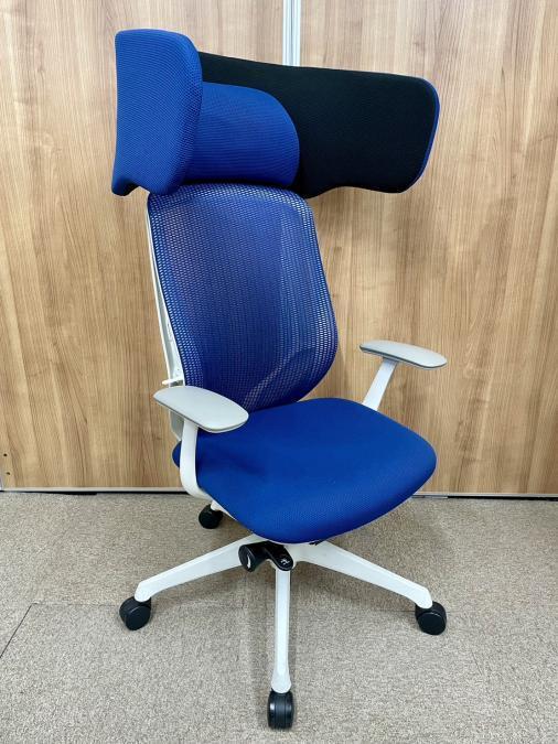 【新品ヘッドレスト交換済み】オカムラ/シルフィー/ブルー/可動肘
