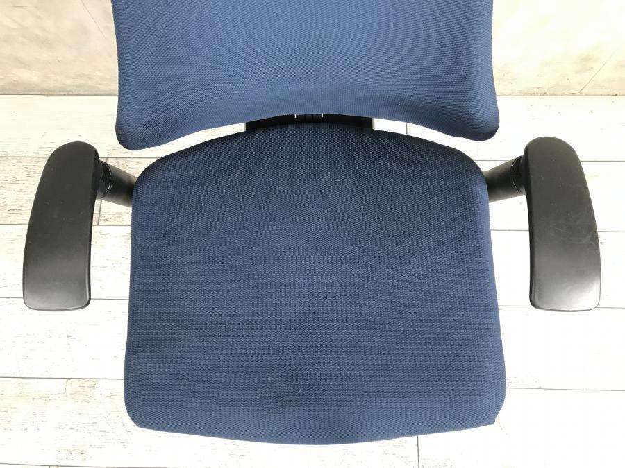 【包み込まれるフィット感!】 ■イトーキ製 エフチェア 肘付 ネイビーブルー ■デスクワークの疲労を軽減!