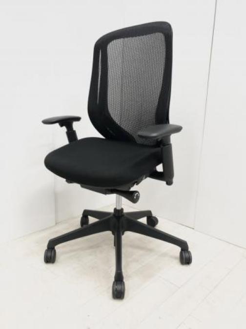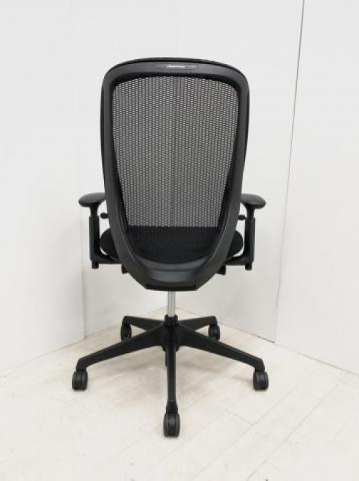 【限定1脚】【三次元曲面が身体にフィット!前傾チルト機能付き大人気メッシュチェア!】■オカムラ(okamura)製 シルフィーチェア(Sylphy) 肘付きハイバック ■背面メッシュ ■可動肘 ■ブラック×ブラックシェル ■ランバーサポート付き