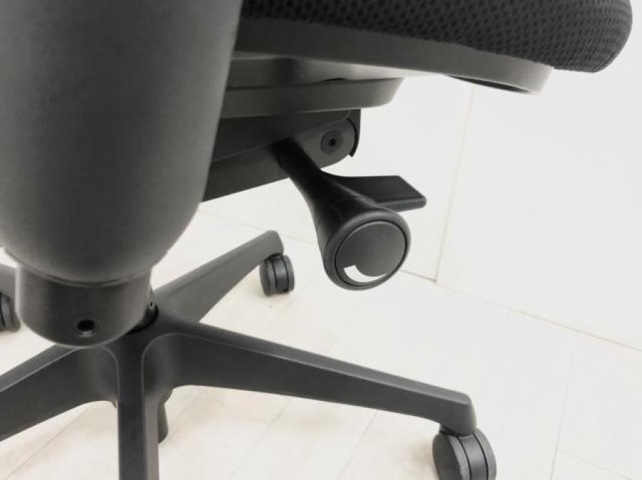 - 座面右下のダイヤル操作で、リクライニングの強弱調整が行えます。これまでのダイヤル式よりも、少ない回転数で、最弱?最強の調整が可能です。