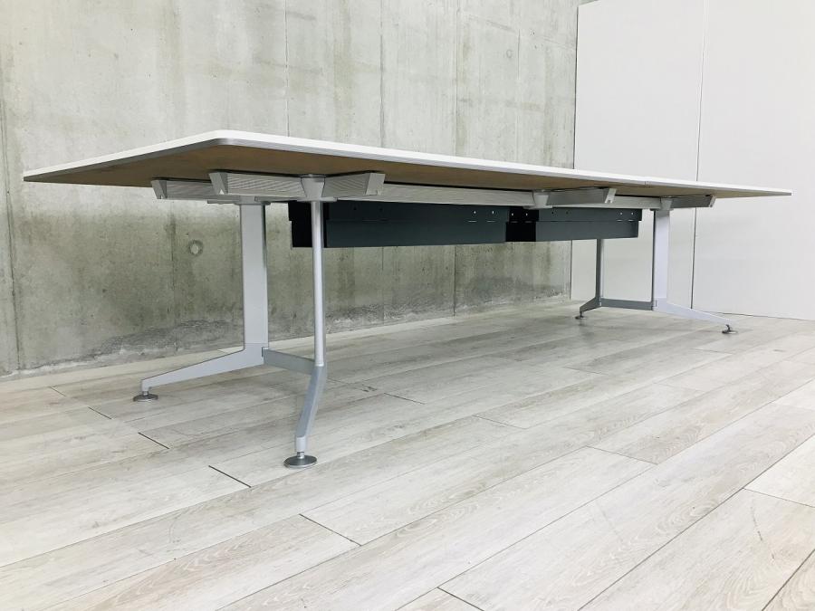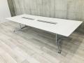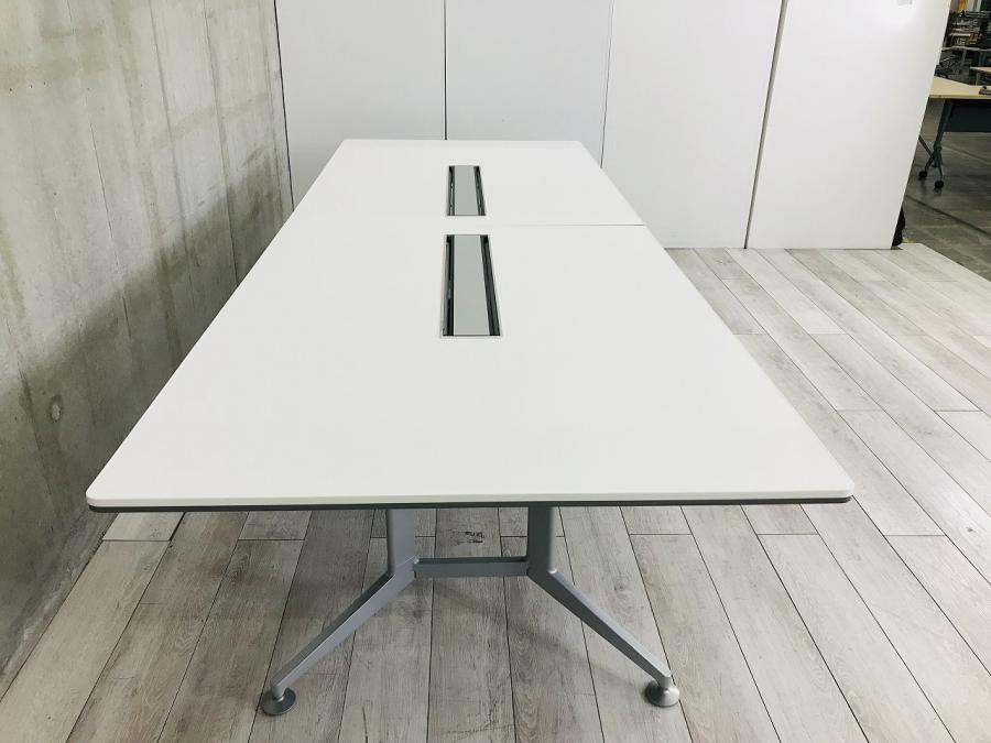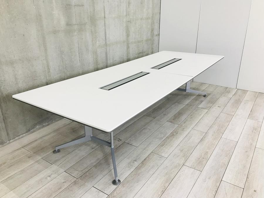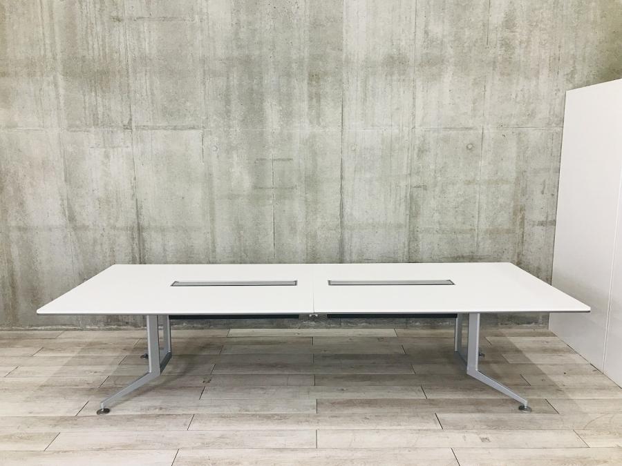 【横幅3200㎜の大型テーブル! 2枚分割の天板で搬入しやすい!】■KOKUYO製 ミーティングテーブル ホワイト天板 ■横幅3200mm×奥行き1200㎜ 【大きな配線口がミーティングをサポート】- 春日部・越谷店
