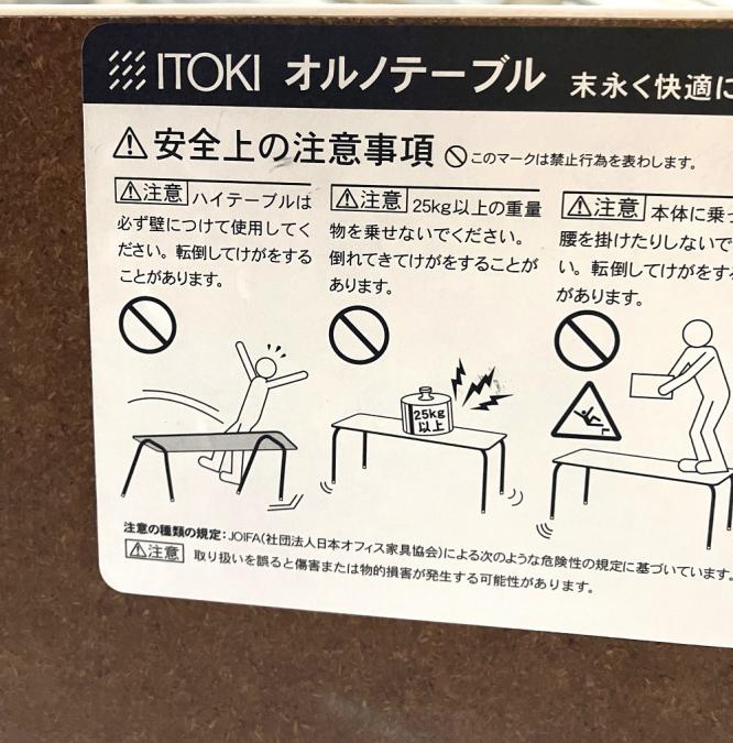 - 壊れている天板歪み、アジャスター無し、キャスター使用不可のようにそのテーブルの本来の効用を果たすための機能に不具合がある。