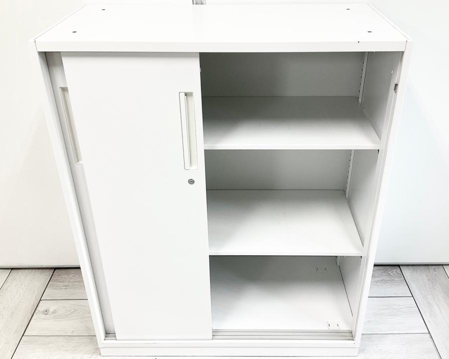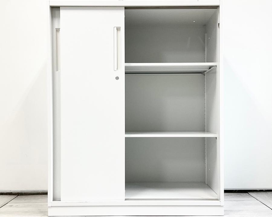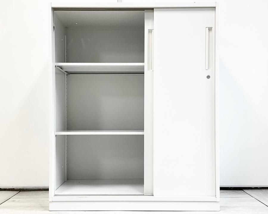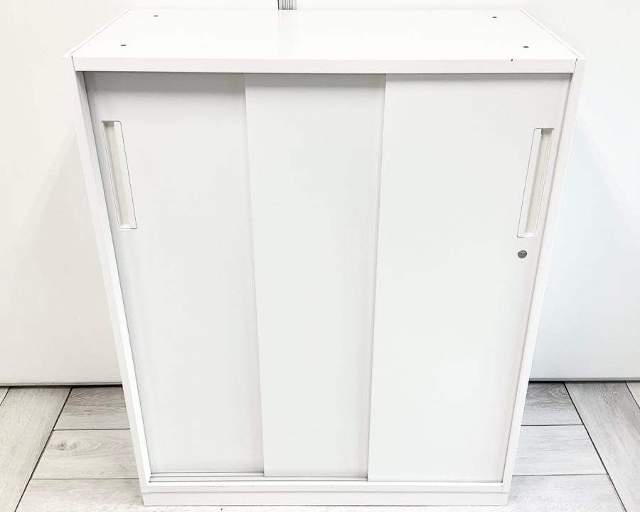 【在庫入替セール品!】【スライド引き戸だから開閉スペースに困りません!人気の引き違い書庫!】/オススメ(おすすめ) /人気商品【弊社使用欄:A01001006】■引違い書庫 2枚戸タイプ ローキャビネット シリンダー錠 ホワイト/内田洋行/HS