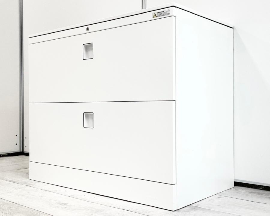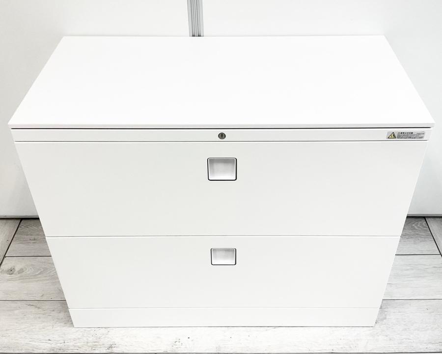 【オフィスの必需品!大容量の三段キャビネット!】■オカムラ(okamura)製 レクトラインシリーズ 3段ラテラル ローキャビネット ■天板/ベース付 ■シリンダー錠 ■ホワイト 【弊社使用欄:A01037187】