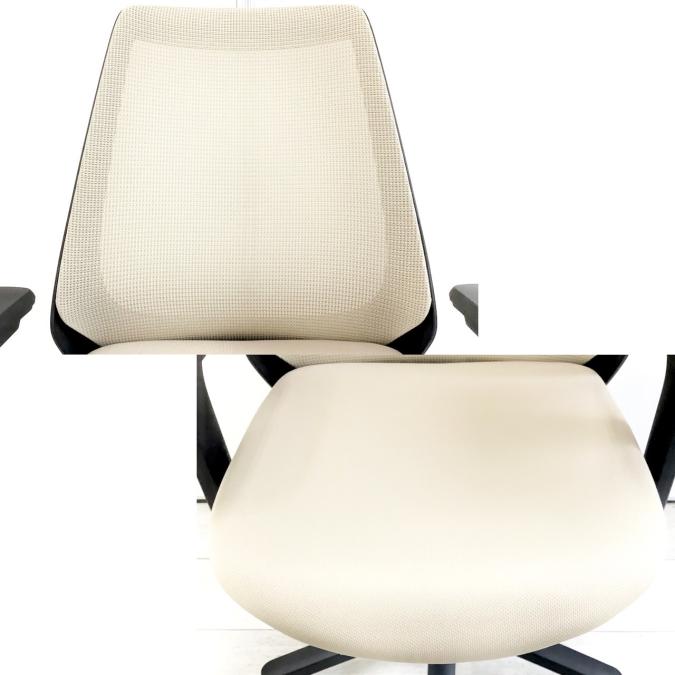 メッシュ素材 - 高伸縮性エラストマー繊維採用で、身体を包み込む座り心地と高い耐久性があります。透過性もあり、オールシーズン快適です。