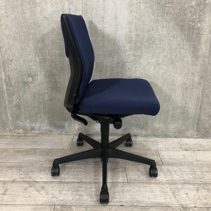【長時間のデスクワークもランバーが快適にサポート!】■okamura(オカムラ)製 エスクードチェア ローバック 色:ダークブルー 肘無し