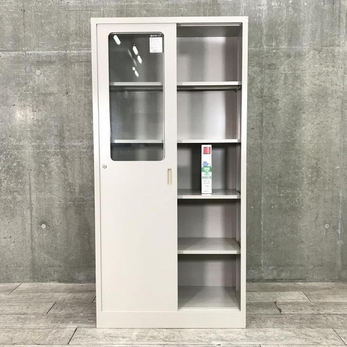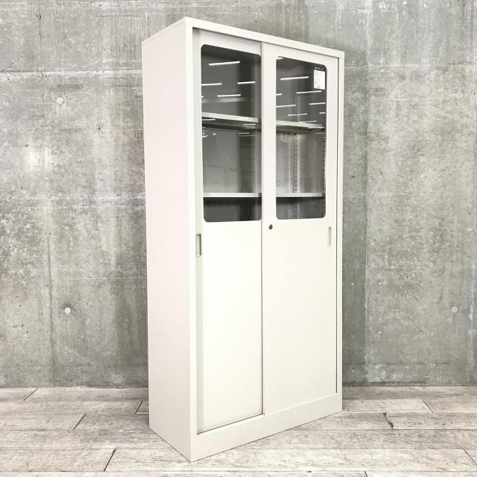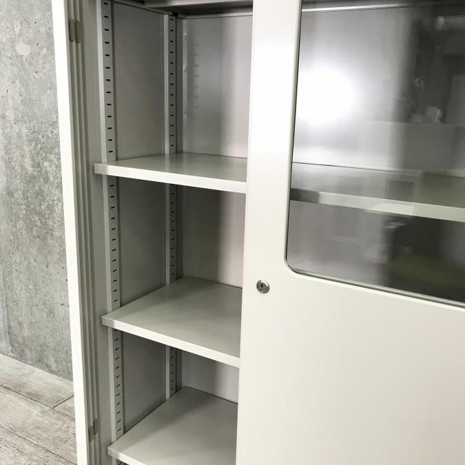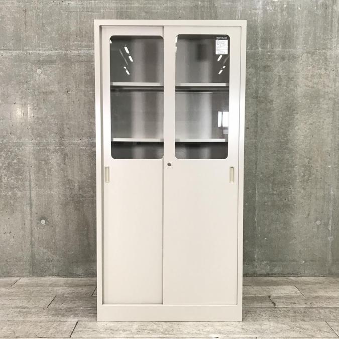 レアなガラス引き戸のハイキャビネットが入荷!■KOKUYO(コクヨ) 保管庫浅型 ガラス引き違い戸 ハイキャビネット 収納家具 ■グレー- 在庫数