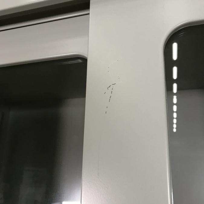 - 目立つ箇所あり傷・凹みが多数、深い傷・凹みが一部ある。(例、天板、正面、背部、サイド部分にある。)