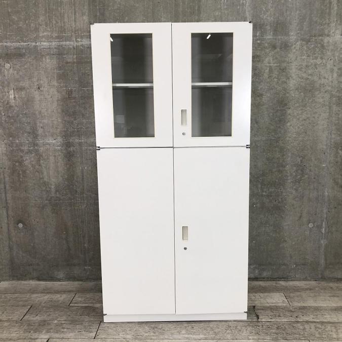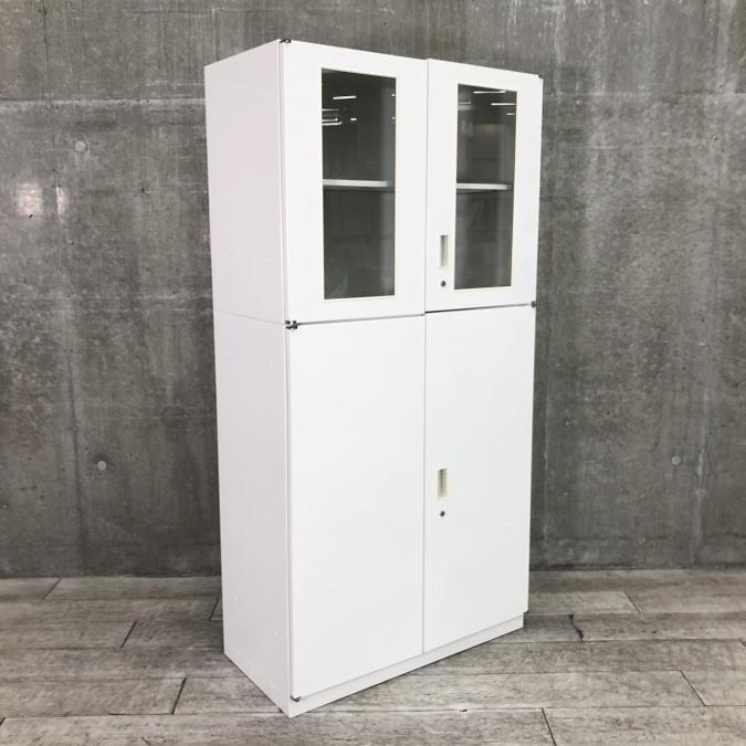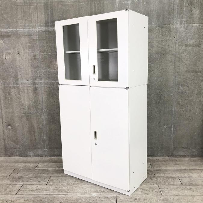 【視認性良好!上下両開きの書庫セット!】■イトーキ(ITOKI)製 シンラインシリーズ(THIN LINE) 上下両開き書庫セット ■シリンダー錠 ■ホワイト