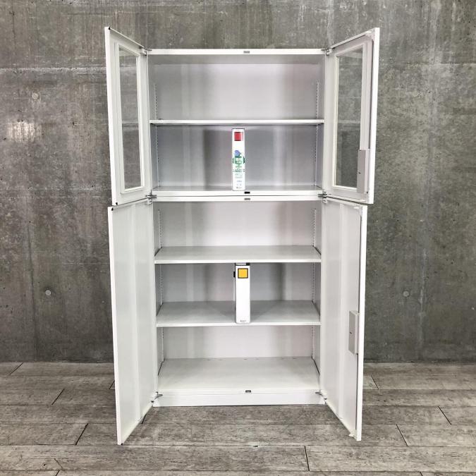 のこり1点!珍しいガラス戸両開き+両開きの上下書庫セットが入荷!■イトーキ製 シンラインシリーズ ホワイト 書庫セット ■オフィスの書類をすっきり収納サーキュラーバリューCO2削減量の算出について
