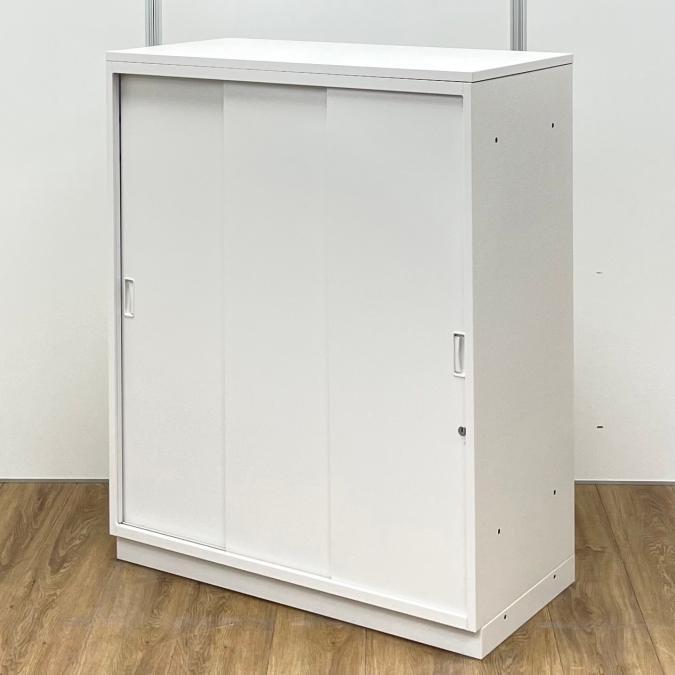 中古 イトーキ製 シンラインシリーズ ホワイトカラー ホワイト天板付き スライド引き戸だから開閉スペースに困らない 3枚引き違い書庫!! W800- 東大阪店