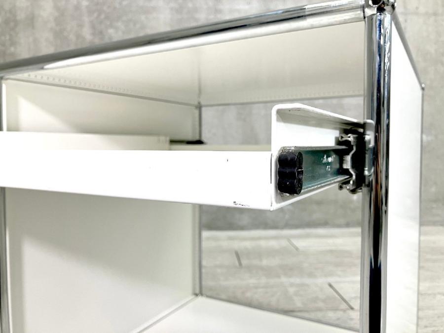 USMハラー 1連1段 脚付きキャビネット/ナイトテーブル ピュアホワイト D500 ガラストップ