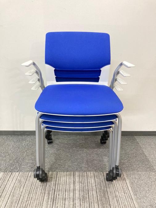 【8脚入荷】 コクヨ KOKUYO スタッキングチェア 肘置き付き ブルー 会議 ミーティング- 新大阪店
