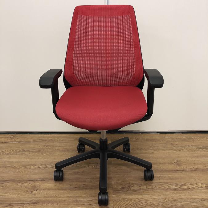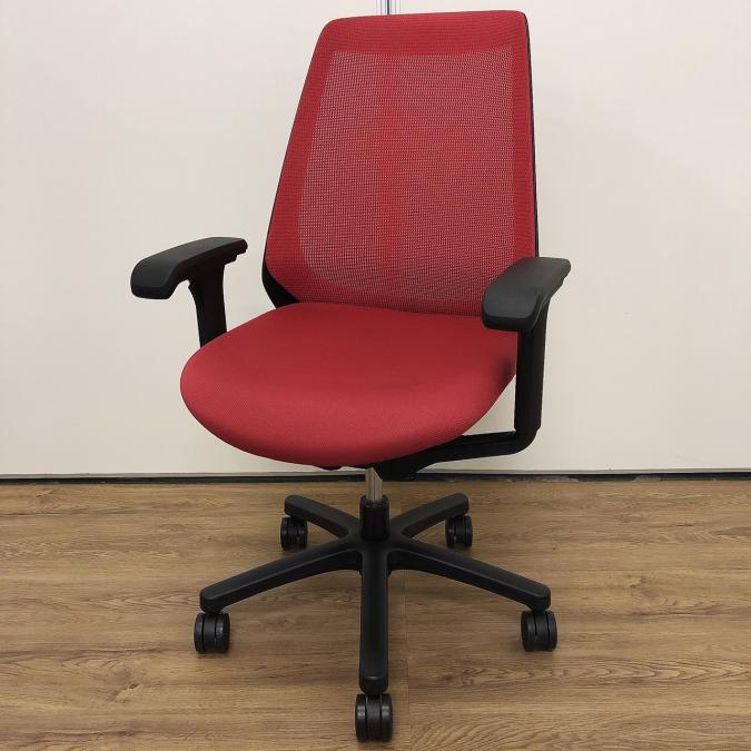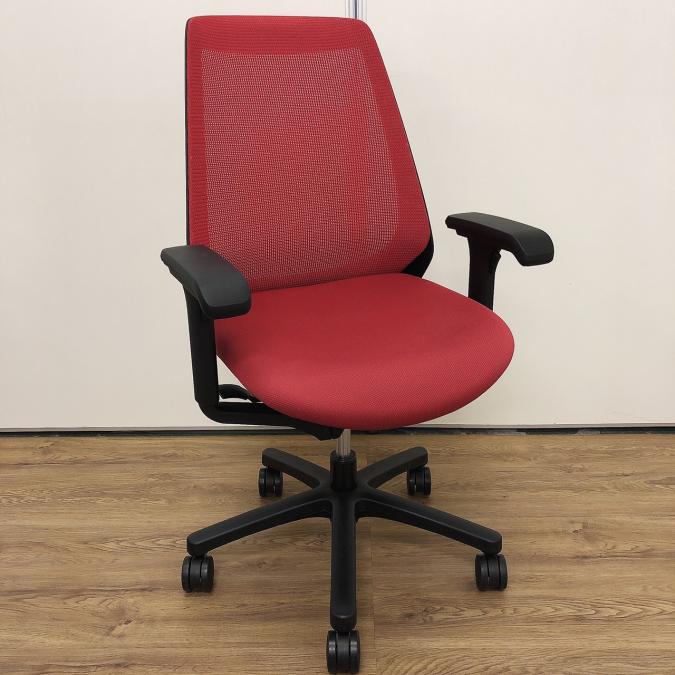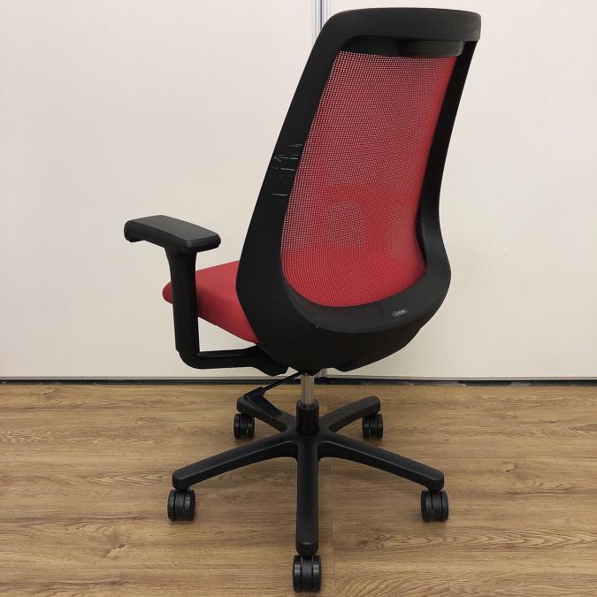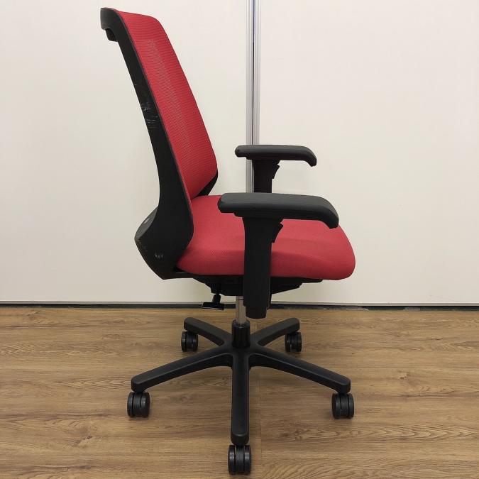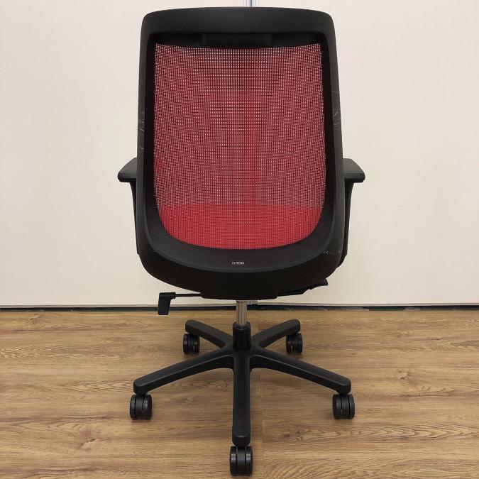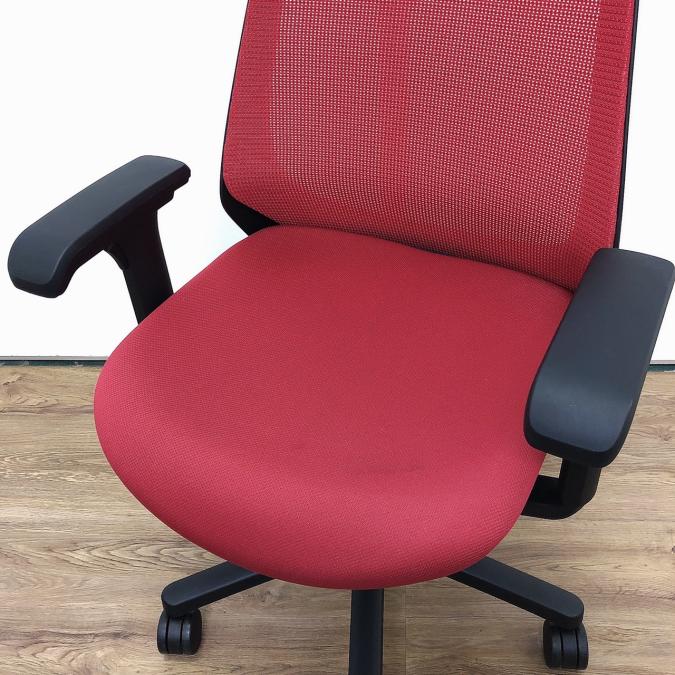 【在庫入替セール】イトーキ ノナ ラズベリーレッド×ブラックの定番カラー 人気のコンパクト設計のメッシュチェア アジャスタブル肘付き- 名古屋千種店