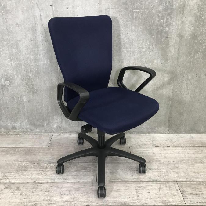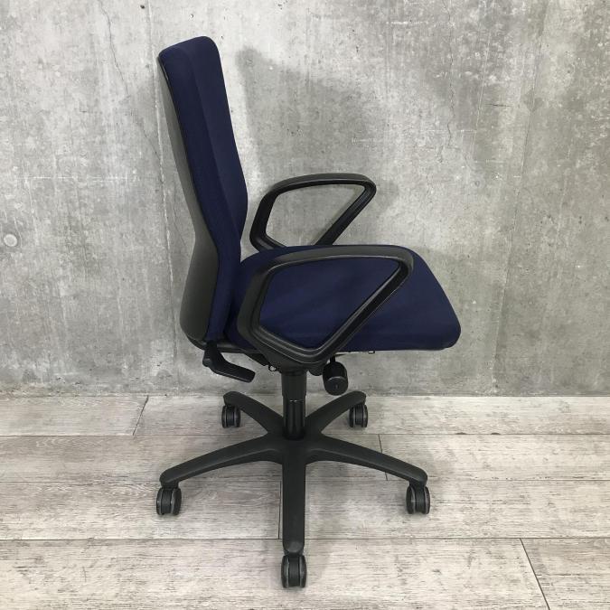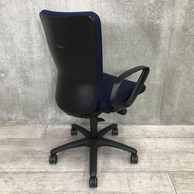 【オフィスの王道チェア!】■オカムラ(okamura)カロッツァ(Carrozza)チェア ■ハイバック 固定肘付き ■ネイビー張地×ブラックシェル 【分厚いクッションとシンプルで使いやすい操作性!】- 池袋店