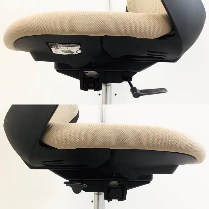 理想の姿勢 - ロッキング時、ヒップチルト機構でシート全体が前方にスライドし、腰部だけが前にずれないので、適正な姿勢がキープできます。