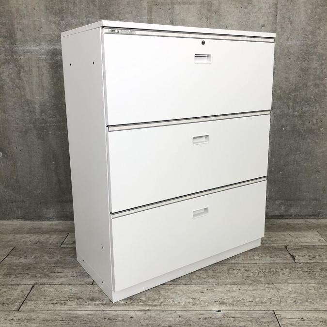 【A4ファイルも沢山収納可能!ホワイトカラーの人気シリーズ3段ラテラル書庫!】■イトーキ(ITOKI)製 シンラインシリーズ (THIN LINE) 3段ラテラル書庫 ローキャビネット ■シリンダー錠 ■ホワイト