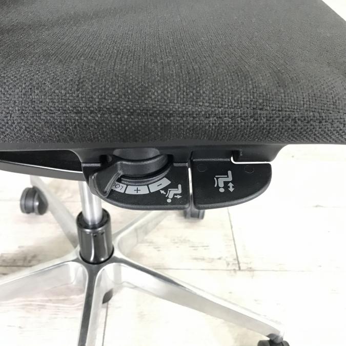 - 座面の高さ調節や背と座がシンクロしてスライドするアンクルチルトリクライニングなど、基本的な調節機能を搭載。