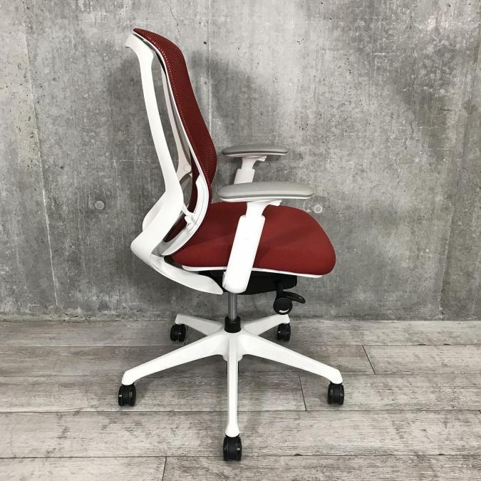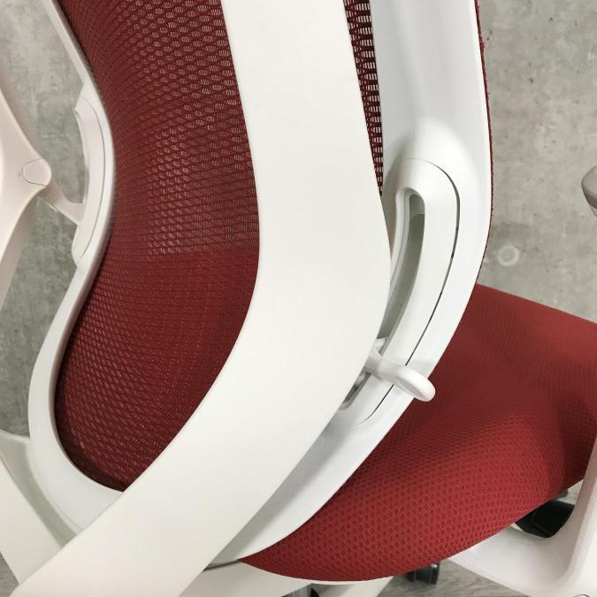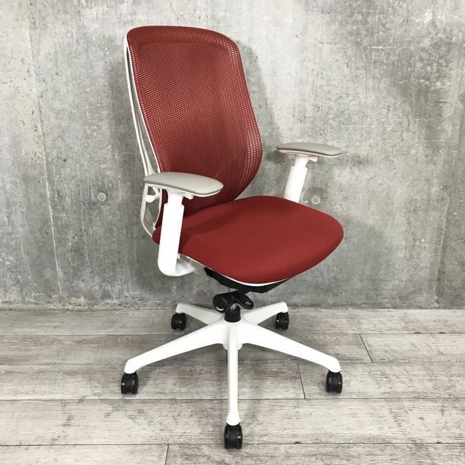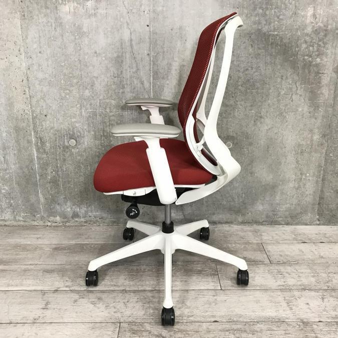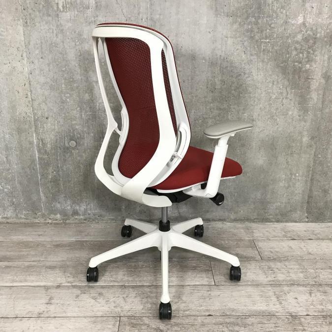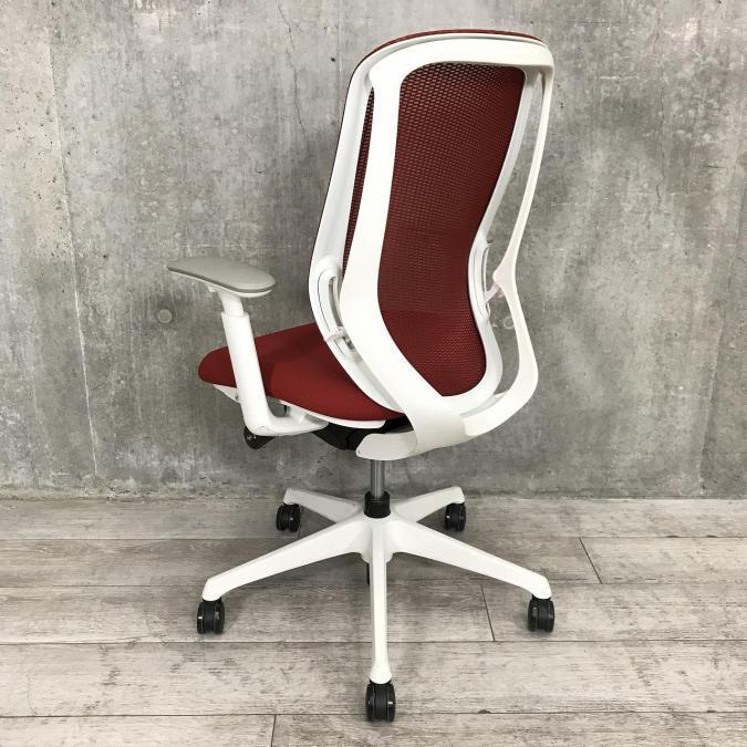 【三次元曲面が身体にフィット!】■オカムラ製 シルフィーチェア 可動肘付 レッド ■まるで手を添えて包み込まれるような優しい座り心地!サーキュラーバリューCO2削減量の算出について