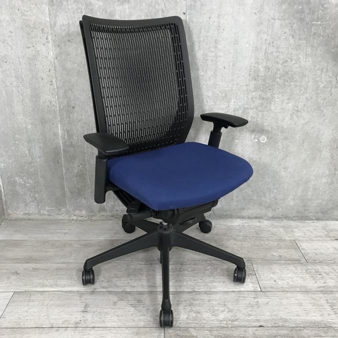 【コスパチェア!】■オカムラ(okamura)/ヴィスコンテ(Visconte)/背もたれメッシュ/ブルー×ブラック ※肘掛け可動タイプサーキュラーバリューCO2削減量の算出について