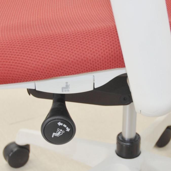 - 座面の左にあるレバー操作により、座面の奥行き調整が可能です。(ストローク:50mm)