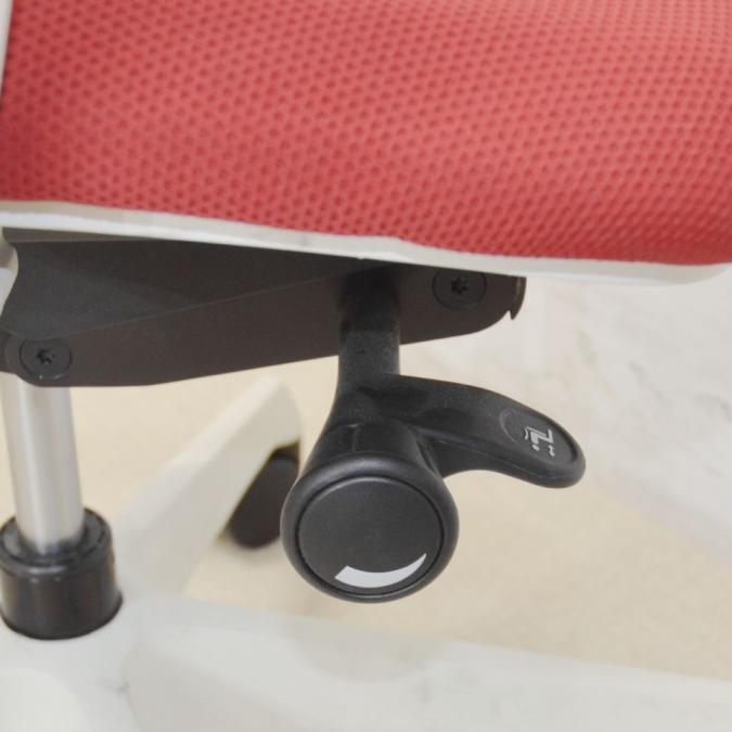 - 座面右下のダイヤル操作で、リクライニングの強弱調整が行えます。これまでのダイヤル式よりも、少ない回転数で、最弱?最強の調整が可能です。