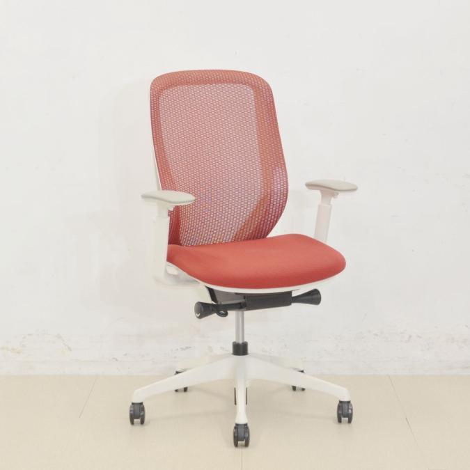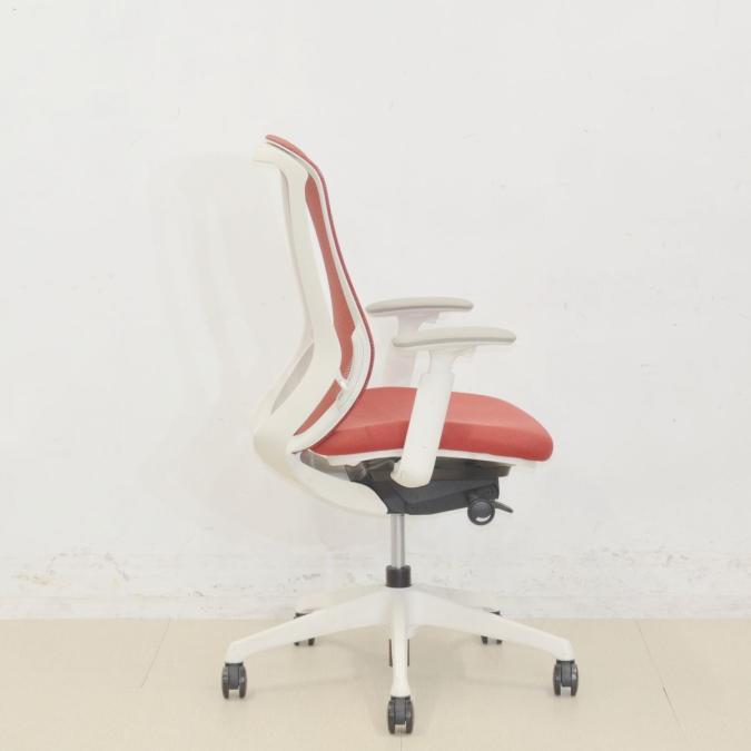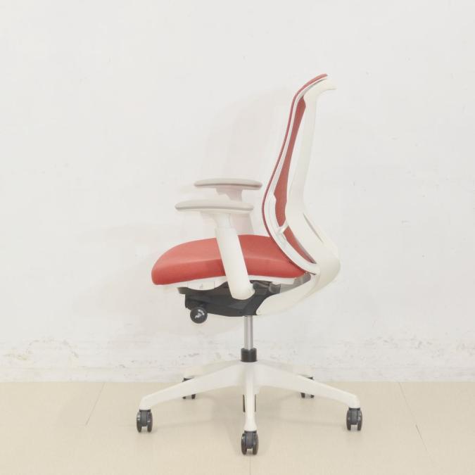 【大手町・神田サテライトCP】【三次元曲面が快適にフィット!!前傾チルト機能付の大人気メッシュチェア!】■オカムラ(okamura)製 シルフィー(Sylphy) 肘付き ハイバック ■メッシュバック ■可動肘 レッド/ フレーム色:ホワイト