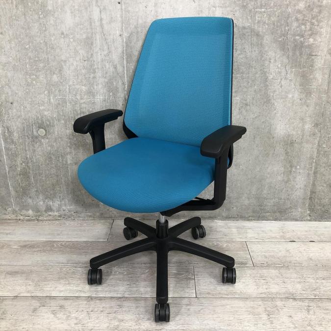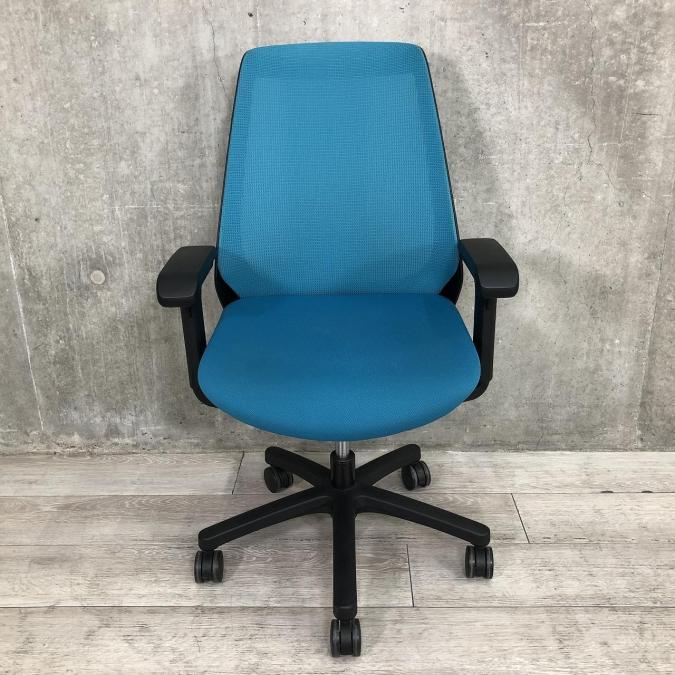 在庫入替セール【コンパクト設計でデスク・テーブルに収まり安い!】ノナチェア 可動肘付 ブルー コスパが良いチェア 弊社使用欄【A00933927】- 在庫数