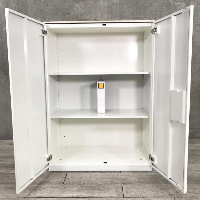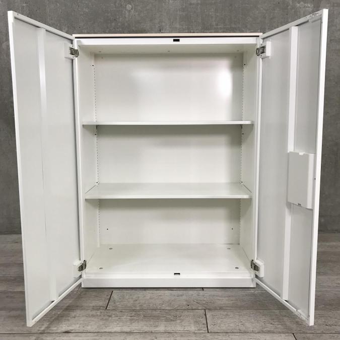 人気のホワイト色、観音開き扉タイプの書庫です。